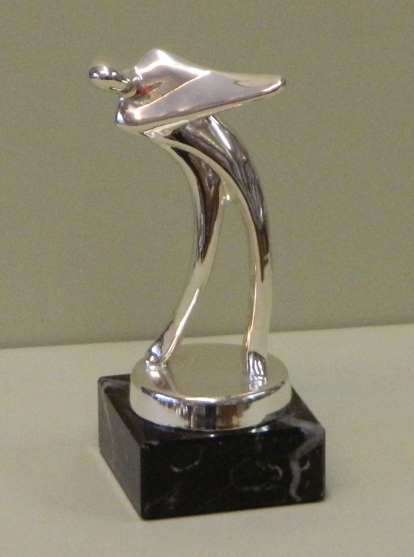 Golfer in moderner Form aus Metall auf echten Marmorsockel.
