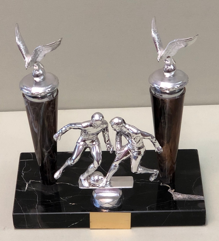 Sportpreis mit Metallfiguren und echter Marmorplatte.