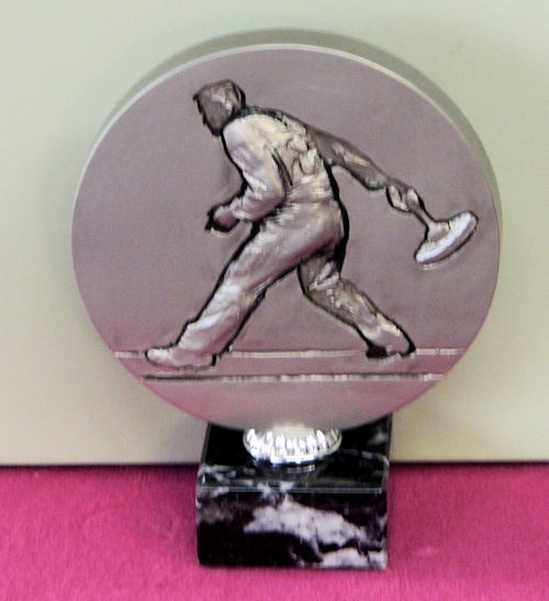 Sportpreis Eisstock auf schwarzen Marmorsockel. Höhe 29cm, Breite 21cm. Durch die besondere Gießtechnik von Hand, mit feinstem Marmor, tritt eine Rohskulptur in Erscheinung. Durch hochwertigen, technischen Aufwand, werden unsere Skulpturen in Zinn von Künstlerhand fertiggestellt. In verschiedenen Patinavorgängen werden die Modelle in Ihrer Darstellung brillianter und lebendiger.