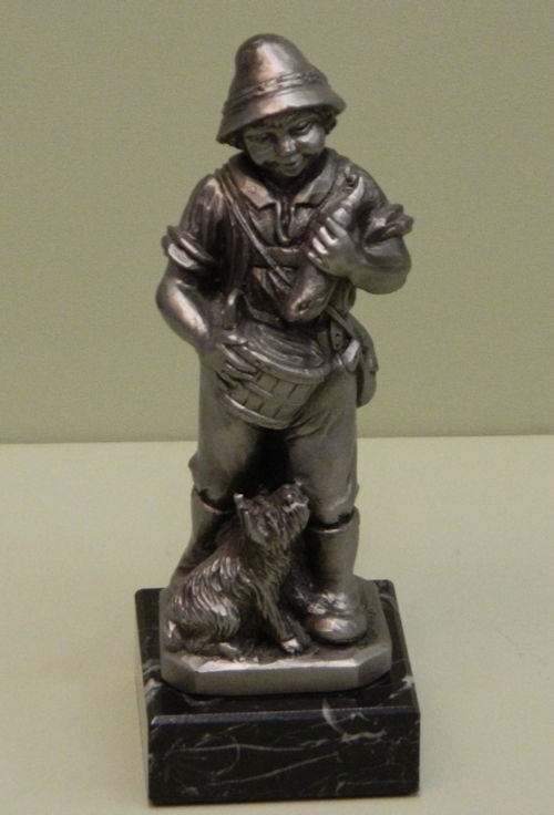Höhe ca. 23cm. Durch die besondere Gießtechnik von Hand, mit feinstem Marmor, tritt eine Rohskulptur in Erscheinung. Durch hochwertigen, technischen Aufwand, werden unsere Skulpturen in Zinn von Künstlerhand fertiggestellt. In verschiedenen Patinavorgängen werden die Modelle in Ihrer Darstellung brillianter und lebendiger.