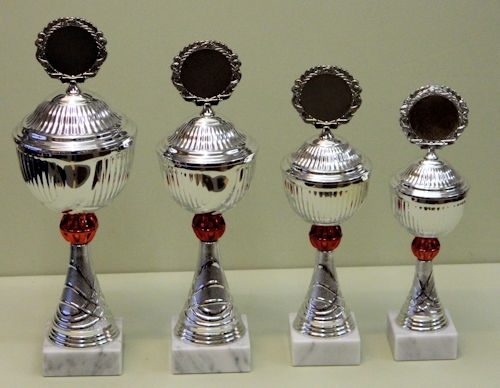 Schöne 4er Serie in Silber auf echten Marmorsockel mit Textschild.