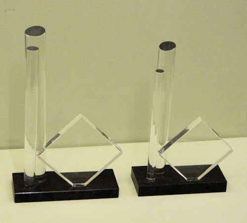 Glaspreis mit einer Raute und zwei Säulen in Klarglas